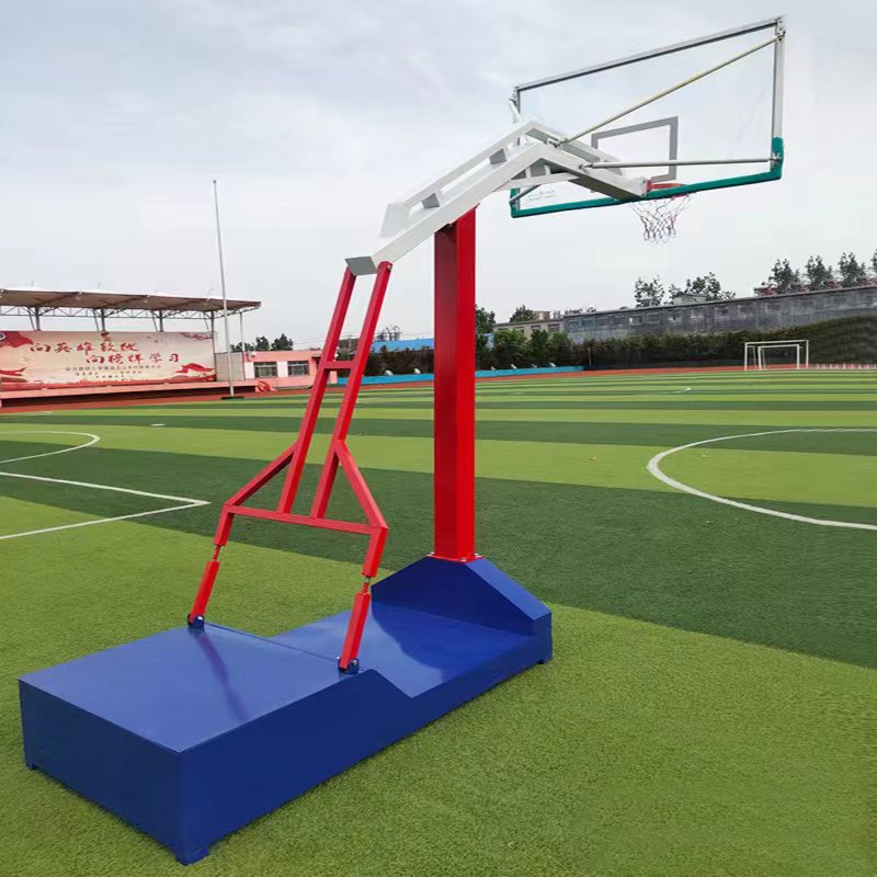 移动式篮球架具有灵活便捷的优势,无需固定地面,减少了施工难度。其箱体采用优质钢板和三角铁制成,尺寸为30(高)*100(宽)*180(长)cm,下面带有四轮方便移动,内部可装压重物品以保证稳定性。例如leyu.乐鱼官网的移动箱式篮球架,立柱采用130×130mm优质方管,伸臂1.8m,篮圈离地面3.05m,篮板下沿离地面2.9m。